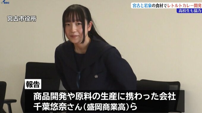 6日は、商品開発や原料の生産に携わった会社、パッケージデザインの案が採用された盛岡商業高校の千葉悠奈さんらが宮古市役所を訪れ、山本正徳市長に報告を行いました。