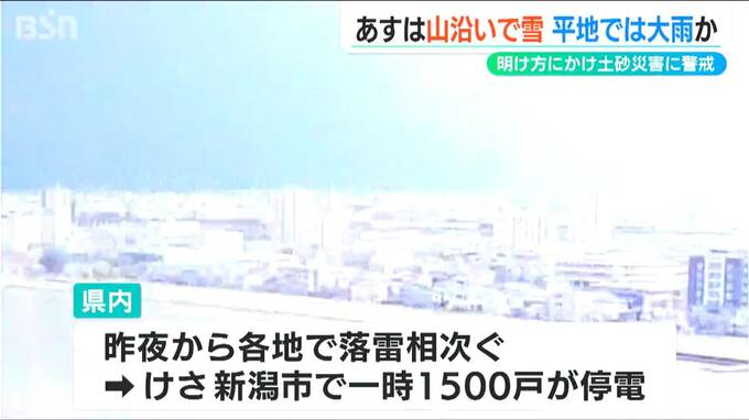 新潟県内では6日夜から落雷が相次ぎました。東北電力ネットワークによりますと、7日朝は落雷により、新潟市で一時1500戸が停電しました。