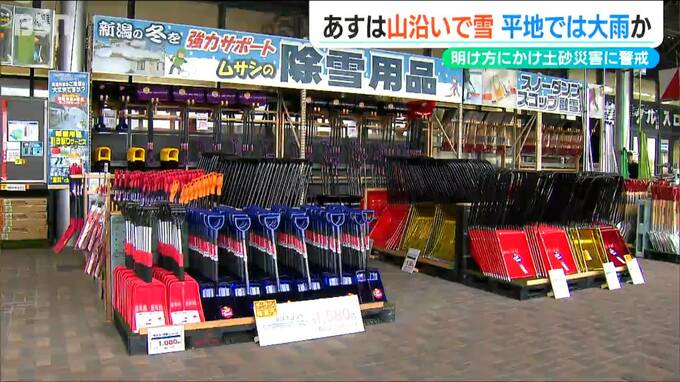 新潟市中央区のホームセンターでは雪を押し出す『スノープレッシャー』に、雪をかきだす『スコップ』や『ダンプ』など除雪用品を並べ、本格的な雪のシーズンに備えています。