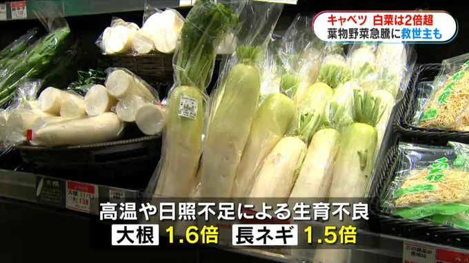 鹿児島中央青果によりますと、高温や日照不足による生育不良で、去年と比べ、大根は1.6倍、長ネギは1.5倍に値上がり。