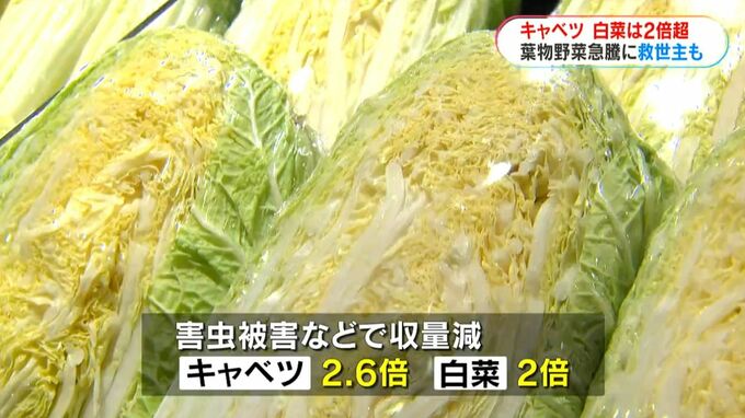 特に、キャベツや白菜は害虫に葉が食われるなどの被害で収量も減り、キャベツは2.6倍、白菜は2倍と、鍋物に欠かせない野菜が大幅に値上がりしているということです。