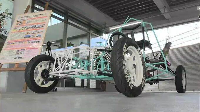 高校生が作り上げた排気量50ccのバギー「ゼロハンカー」が岡山県笠岡市のカーディーラーに展示されています。高校生の作ったゼロハンカーです。今月(12月)1日にリニューアルオープンしたネッツトヨタ岡山笠岡店…
