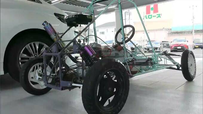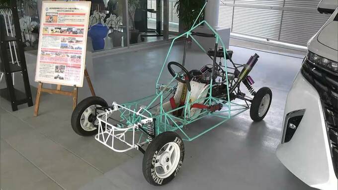 高校生が作り上げた排気量50ccのバギー「ゼロハンカー」が岡山県笠岡市のカーディーラーに展示されています。
