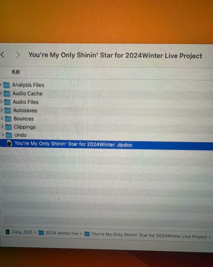 角松さんは、中山美穂さんが出演するコンサートのための「You're My Only Shinin' Star」の楽曲データが入った、フォルダの接写を投稿しています。