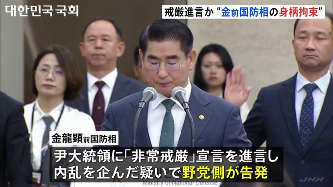 韓国の検察は、けさ、尹錫悦大統領に「非常戒厳」を進言したとされる前国防相の身柄を拘束しました。前国防相は、野党側から内乱を企んだ疑いで告発されていました。韓国の通信社・聯合ニュースによりますと、非常…