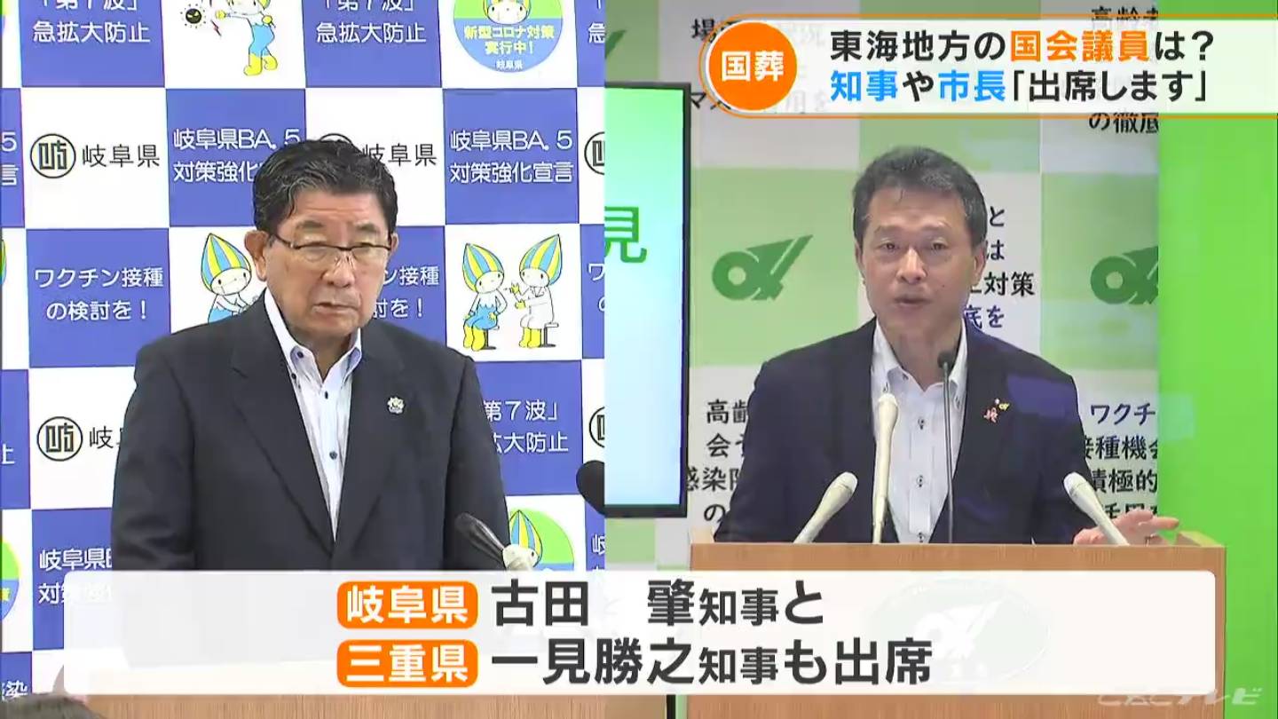 9月27日に行われる安倍元総理の国葬。東海地方の国会議員はどう対応するのでしょうか。