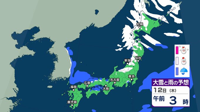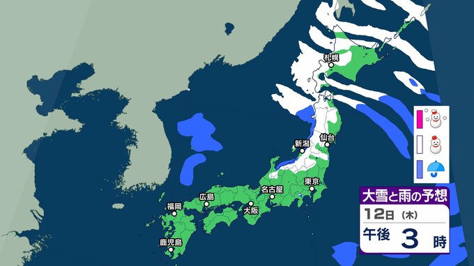居座る寒気で本格的な冬の寒さが続く…週末に向けて関東など太平洋側でも冷たい雨【雪と雨 3時間ごとシミュレーション】金曜の東京都心は真冬並みの寒さに チューリップテレビ 2024年12月9日(月) 08:14 国内 暮らし・マネー 大雪と雨のシミュレーション 12日(木)