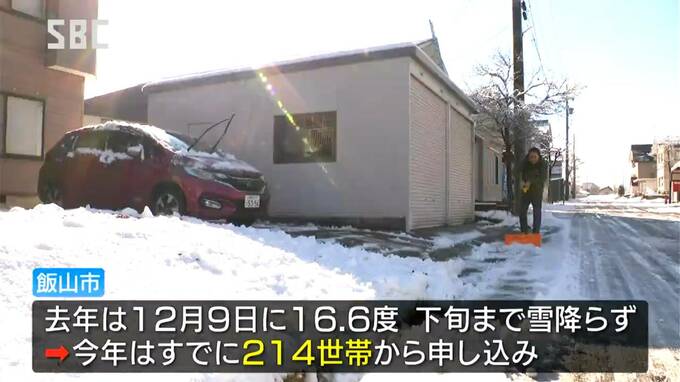 2023年は12月9日の最高気温が16.6度となるなど暖冬で、下旬までまとまった雪が降りませんでしたが、今年はすでに214世帯から申し込みがあるということです。