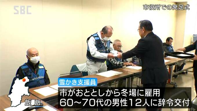 飯山市で自宅の雪かきが困難な高齢者などを支える「雪かき支援員」の発足式が行われました。