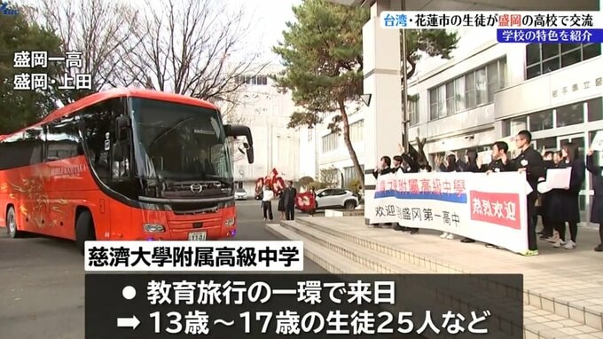 盛岡一高は11月、研修旅行で台湾を訪れた生徒もいる2年生が出迎えました。