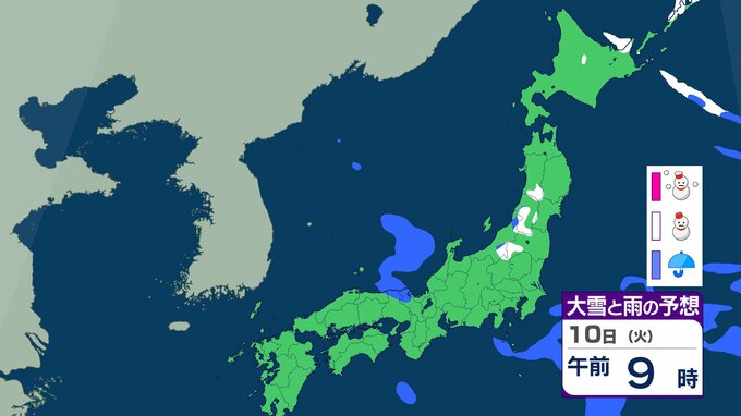 14日頃から強烈な寒気が南下 日本海側で大雪のおそれ【雪と雨 3時間ごとシミュレーション】全国的に寒さ厳しく【2週間天気】 チューリップテレビ 2024年12月9日(月) 16:16 国内 暮らし・マネー 大雪と雨のシミュレーション 10日(火)