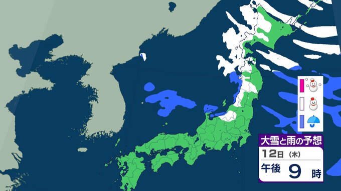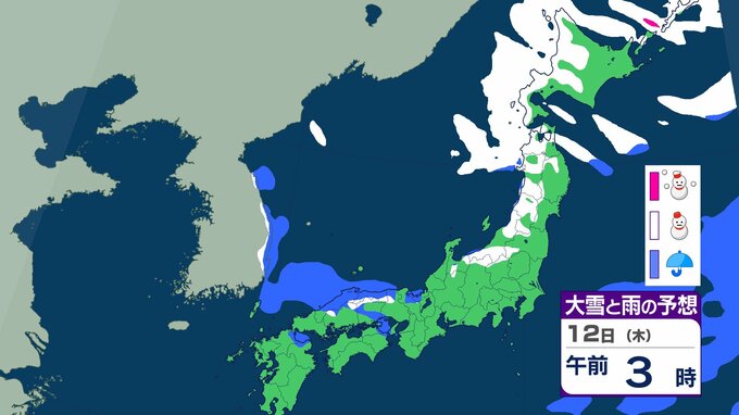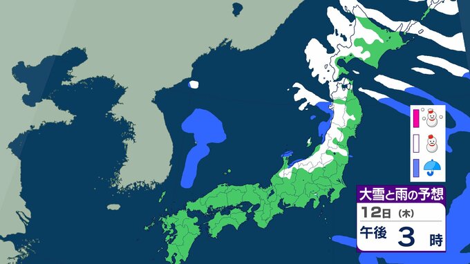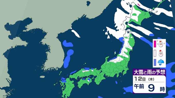 14日頃から強烈な寒気が南下 日本海側で大雪のおそれ【雪と雨 3時間ごとシミュレーション】全国的に寒さ厳しく【2週間天気】 チューリップテレビ 2024年12月9日(月) 16:16 国内 暮らし・マネー 大雪と雨のシミュレーション 12日(木)
