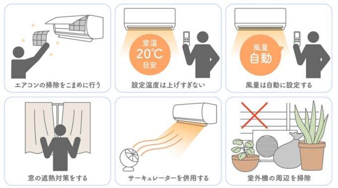 (1)エアコンの掃除をこまめに行う。
