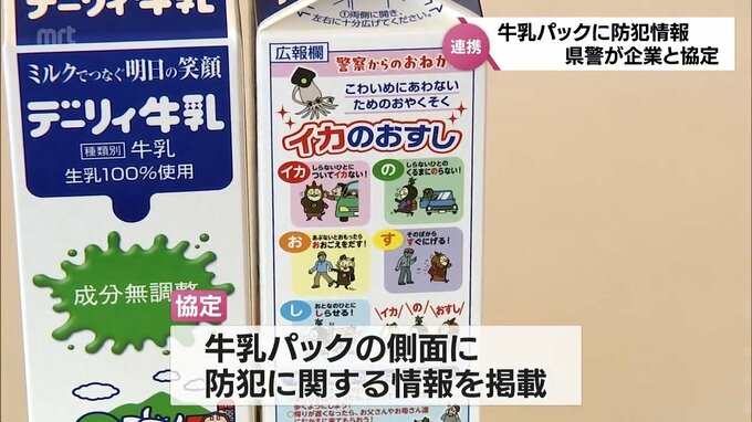 防犯に関する情報を牛乳パックに掲載し、県民の防犯意識向上につなげようと、宮崎県警察本部と牛乳を製造する都城市の企業が連携協定を結びました。(保育園児たち)「『いかのおすし』の『いか』、知らない人につ…