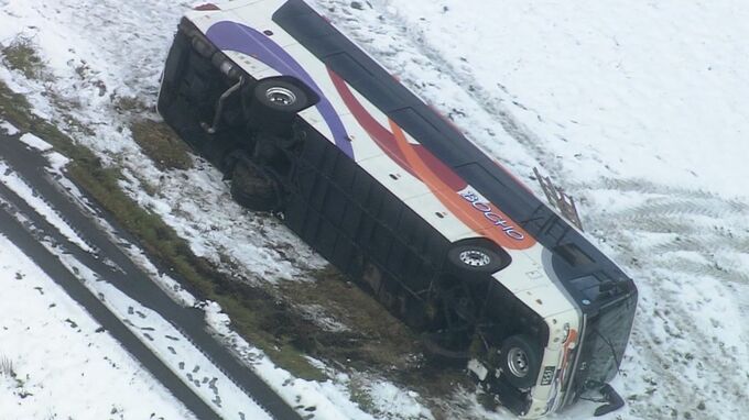けさ(9日)、岡山県真庭市の市道で大型の観光バスが横転しました。乗客11人がけがをしています。きょう午前10時前、真庭市蒜山上徳山で、大型の観光バスが市道から道路脇に横転しました。事故当時、バスには乗員乗客…