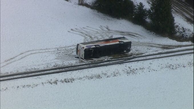 事故当時、バスには乗員乗客45人が乗っていて、乗客11人が病院に救急搬送。うち1人が骨折している可能性があるものの、いずれも命に別状はないということです。