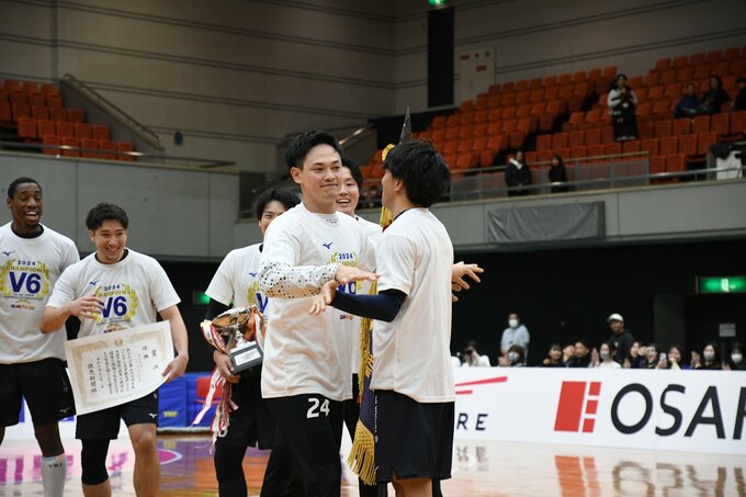 延長前半は互いが点を取り合い25‐25で折り返すと、延長後半1分、田中大介(29、豊田合成)が華麗なステップシュートを決め、この試合初めてリードを奪う。そして延長後半残り2秒、豊田合成が1点リードの場面。BK刈谷にペナルティースローが与えられるも、パリオリンピック™代表のゴールキーパー中村匠(28、豊田合成)がしっかりと抑え、ここで勝負あり。豊田合成が延長にもつれこむ大激戦を制し、大会5連覇(2020年〜24年)を決めた。また最優秀選手賞には、試合を通してスーパーセーブで何度もチームを救ったゴールキーパーの宮城が初めて選ばれた。