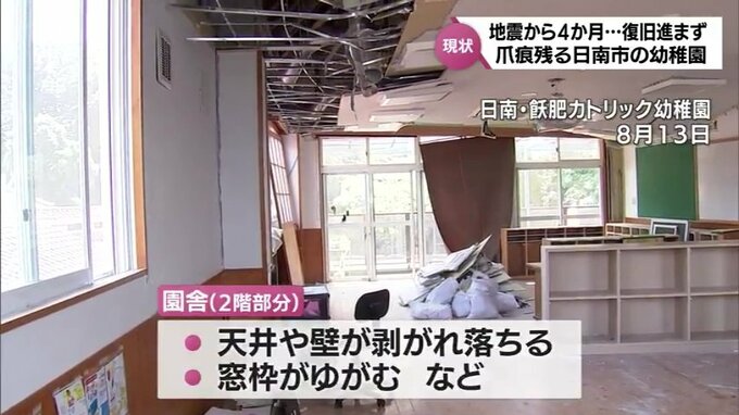 最大震度6弱を観測した宮崎県日南市の幼稚園では思うように復旧が進まず、いまだ、被害の爪痕が残っているようです。現状を取材しました。