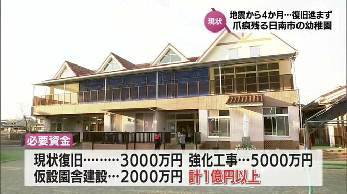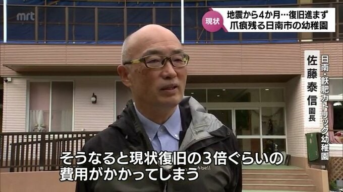「(建物を)元に戻すだけっていうのは、私としてはあり得ない話で、可能な限り保育室を全部1階に下ろすとか、それから、屋根を軽いものに変えて揺れをできるだけ抑えるとか、そういう措置をしたい。そうなると、現状復旧の3倍ぐらいの費用がかかってしまう」