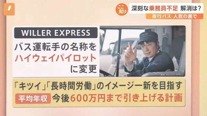 実際、WILLER EXPRESSではバス運転手の名称を「ハイウェイパイロット」に変更しました。名前を格好よくするだけではなく、「キツイ」「長時間労働」のイメージ一新を目指し、平均年収を今後600万円まで引き上げる計画だということです。