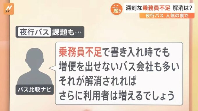 バス比較ナビによりますと「乗務員不足で書き入れ時でも増便を出せないバス会社も多い。それが解消されればさらに利用者は増えるでしょう」ということです。