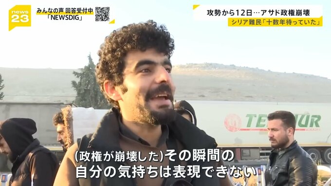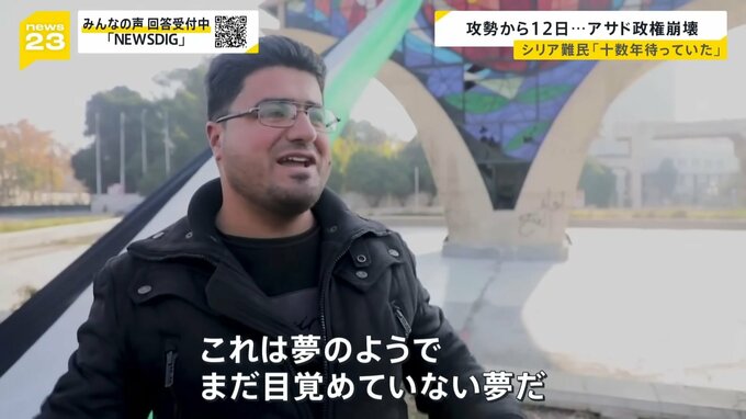 「(政権が崩壊した)その瞬間の自分の気持ちは表現できない。信じられなかったんだ。シリアは自由だ。私たちはこれから国をつくるんだ」