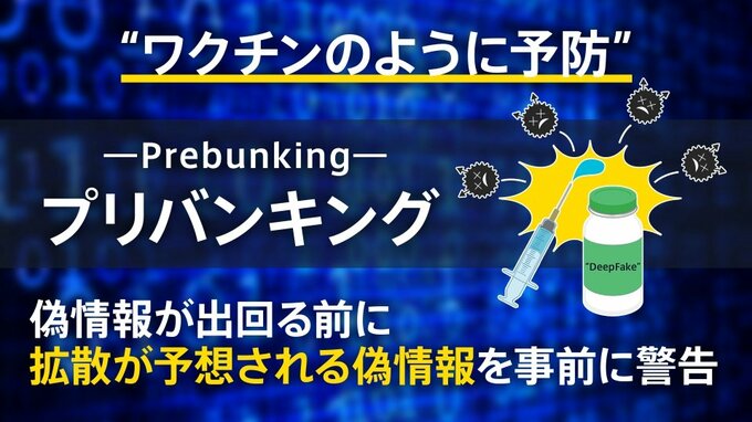 偽情報の対策として、ファクトチェックだけでなく偽情報が出回る前に予防する「プリバンキング」というものがあります。偽情報が出回る前に、拡散が予想される偽情報を事前に警告するというものです。