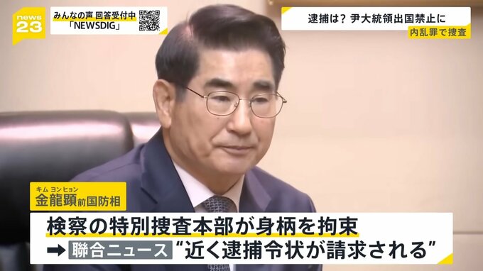 また金龍顕前国防相は現在、検察の特別捜査本部が身柄を拘束しており、聯合ニュースは、“近く金氏の逮捕令状が請求される”と報じています。