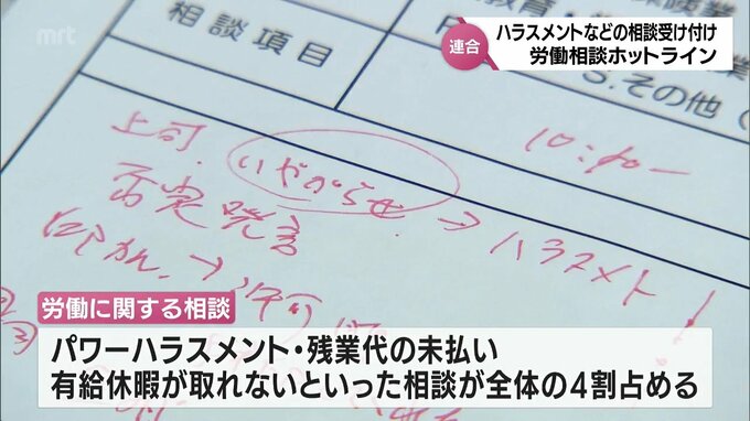 長時間労働や職場のパワーハラスメントなどの相談を受け付ける「全国一斉集中労働相談ホットライン」が10日から始まりました。この電話相談は、労働組合の全国組織「連合」が全国一斉に行っているもので、県内では…