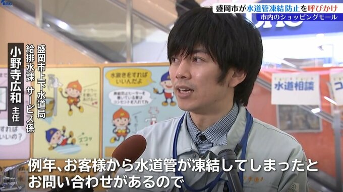 冬の水道管凍結防止を呼びかける盛岡市のキャンペーンが市内のショッピングモールで行われています。