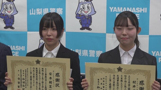 飲酒運転の根絶や外国人観光客に交通ルールを伝えるポスターをデザインした専門学校の生徒に山梨県警が感謝状を贈りました。感謝状が贈られたのは甲斐市のサンテクノカレッジでデザインなどを学ぶ安本結菜さんと村…