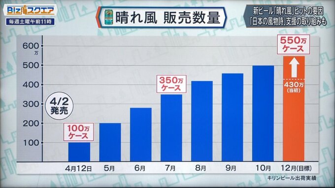 2024年4月2日に発売された「晴れ風」は、わずか10日で100万ケースに到達。3か月後には年間目標としていた430万ケースの8割となる350万ケースを突破し、年間の販売目標を当初の1.3倍となる550万ケースに上方修正した。