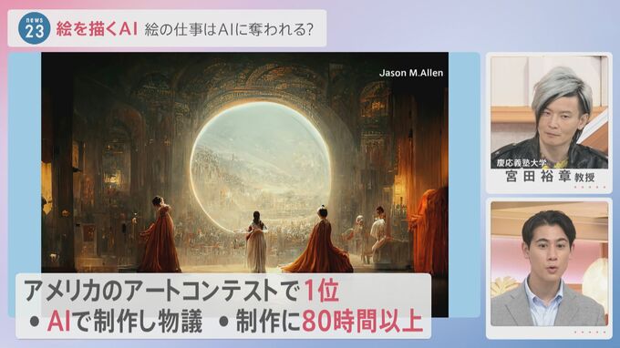 アメリカでは、アートコンテストで1位を獲得しました。AIを使って描かれたことがわかり物議を醸しているんですが、大会のルールにAIについての言及はなく、制作者は完成までに80時間以上費やしていると。これをどう捉えるか。創作活動だと言えますから。