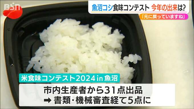 魚沼市で開かれた「米食味コンテスト」。会場には5つの「魚沼産コシヒカリ」がふっくらと炊かれて登場しました。市内の生産者から出品された31点の中から、書類審査と機械による審査を通過して選ばれたコメです。