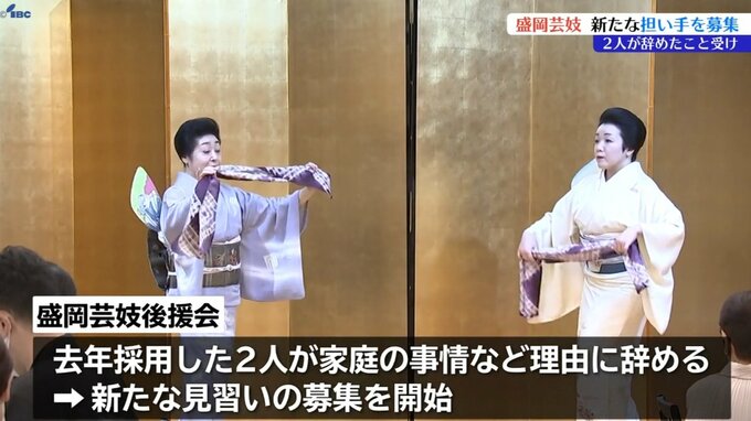 伝統文化の継承を目的に2023年採用された「盛岡芸妓」の見習い2人が辞めたことに伴い、育成事業に取り組んでいる団体が新たな担い手を募集しています。