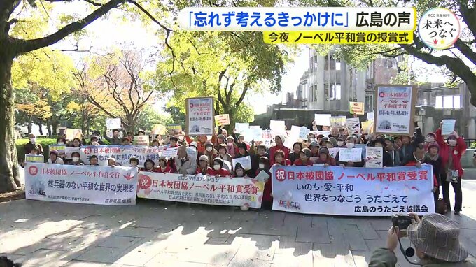 原爆ドーム前では、授賞式の日に合わせて被爆者団体などが集まり、核兵器廃絶の思いを新たにしました。