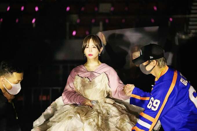投稿された写真では、浜崎あゆみさんが、ロングドレスを着て熱唱している姿や、スタッフとステージ上で、確認作業をしている様子などが見て取れます。