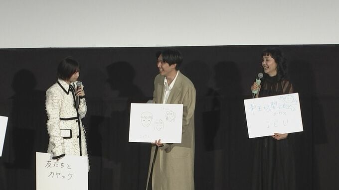 このテーマで、「3人(西野さん、南さん、作道監督)がニコニコ笑ってる顔」を書いた坂東さん。“僕ら、初号試写を3人同時に見れたじゃないですか。その試写が終わった後に3人と劇場内でお会いした時の顔を僕は忘れられなくて。すごくいい顔を皆さんして下さってたので、安心したんですよ。いい映画だったのかなっていうのが”と語ると、南さんは“なるほど、顔に出るよね。深い!”と笑顔で述べました。