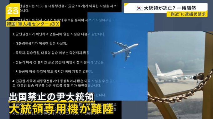 さらに、現在出国禁止の尹大統領ですが、10日、大統領専用機が離陸し一時騒然。大統領警護庁は「定期的なテスト飛行だった」と明かし、騒動の打ち消しに追われました。