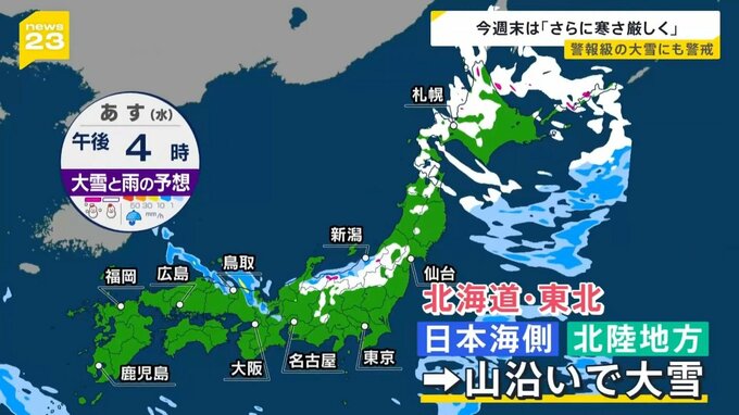 週末は「さらに厳しい寒さ」に “警報級の大雪”にも警戒