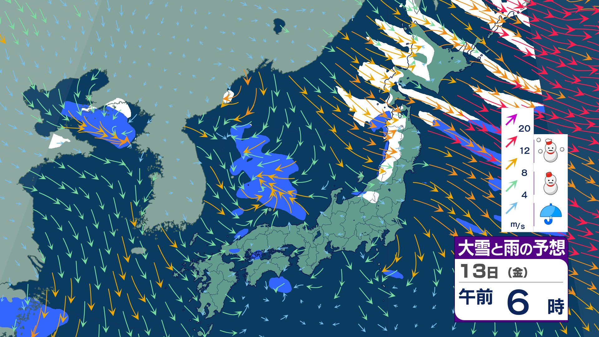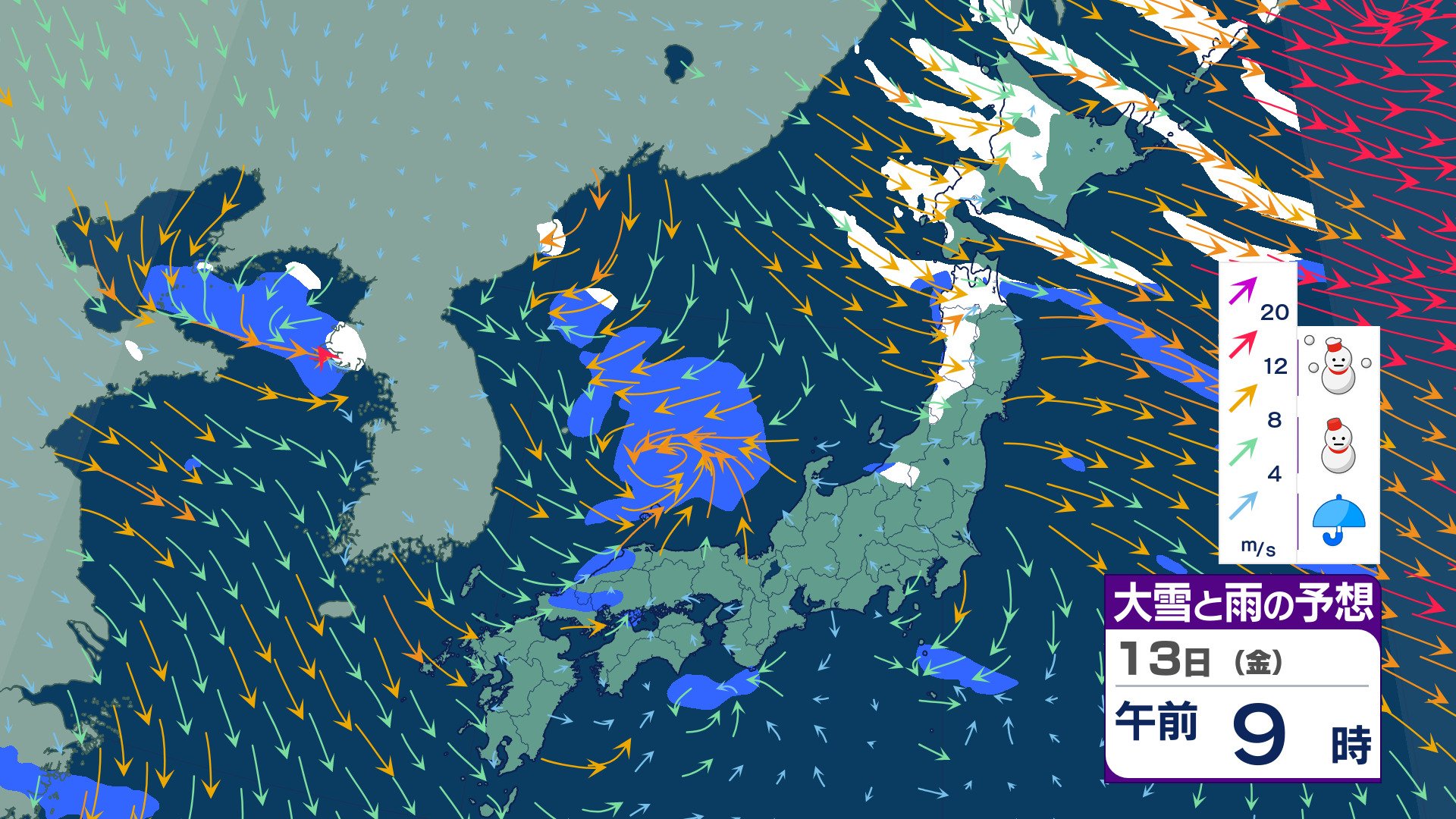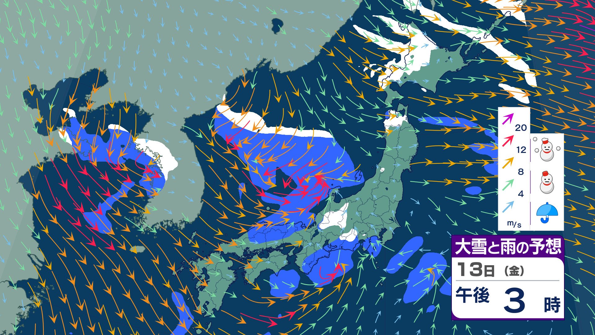 日本海側は雪や雨…北日本は大雪も太平洋側は晴天【雪と雨のシミュレーション 3時間ごと】各地で冬の寒さが続く…晴れても日中は冬のコートで チューリップテレビ 2024年12月11日(水) 10:01 国内 天気 大雪と雨のシミュレーション 13日(金)