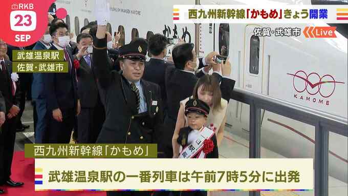 西九州新幹線が23日開業し、佐賀県の武雄温泉駅と長崎駅の間で運行を始めました。武雄温泉駅から中継です。佐賀県の始発駅となる武雄温泉駅です。博多駅から特急リレーかめもで移動した乗客は武雄温泉駅で対面乗…