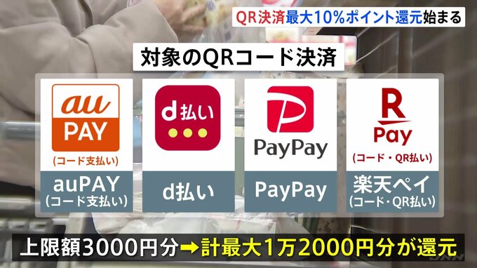 東京都は物価高騰対策として、都内のスーパーなどでQRコード決済を使うと最大10%のポイント還元を受けられるキャンペーンをきょうから始めました。キャンペーンの対象は都内のスーパーやレストランなどで、指定のQ…