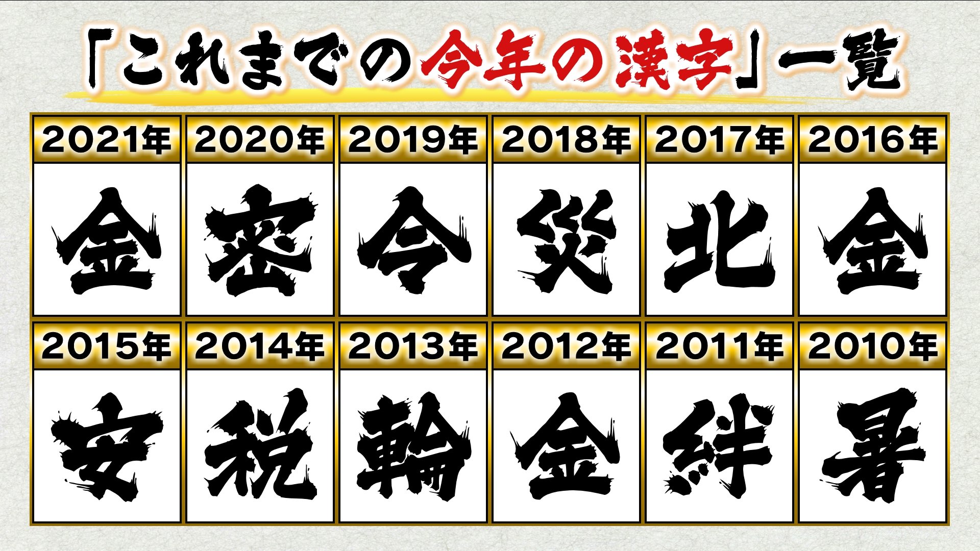 2014年~2010年までの漢字は次の通りでした。