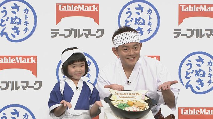 人気子役・永尾柚乃さんと、お笑いコンビ・スピードワゴンの井戸田潤さんが、テーブルマーク「カトキチさぬきうどん」新CM発表会に出席しました。