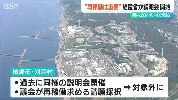 なお柏崎市と刈羽村については、過去に同様の説明会を開催していることや、地元議会が早期再稼働を求める請願を採択していることから、今回の説明会の対象から外したということです。