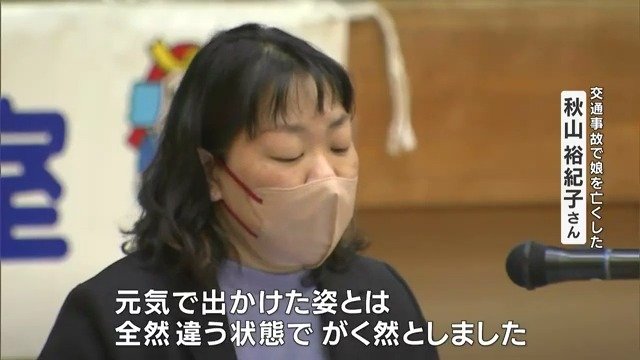 「車両内では、心臓マッサージが行われ、車内は血液の匂いが充満してました。フロントガラスなども顔にいっぱい刺さった状況でした。よく見ると、足の方から血液が出ていて、スカートが血まみれで絞れるような状態でした」