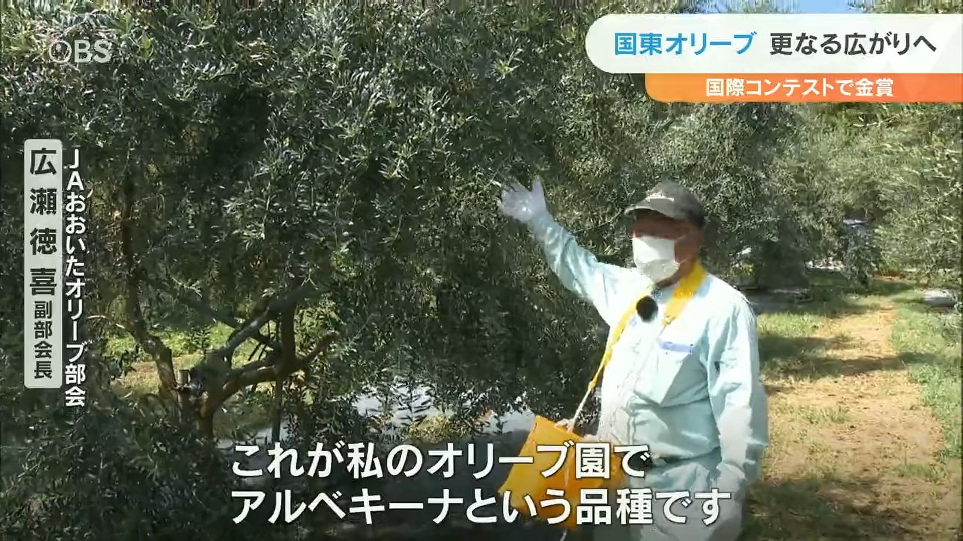 (JAおおいたオリーブ部会・広瀬徳喜副部長)「これが私のオリーブ園でアルベキーナという品種です」