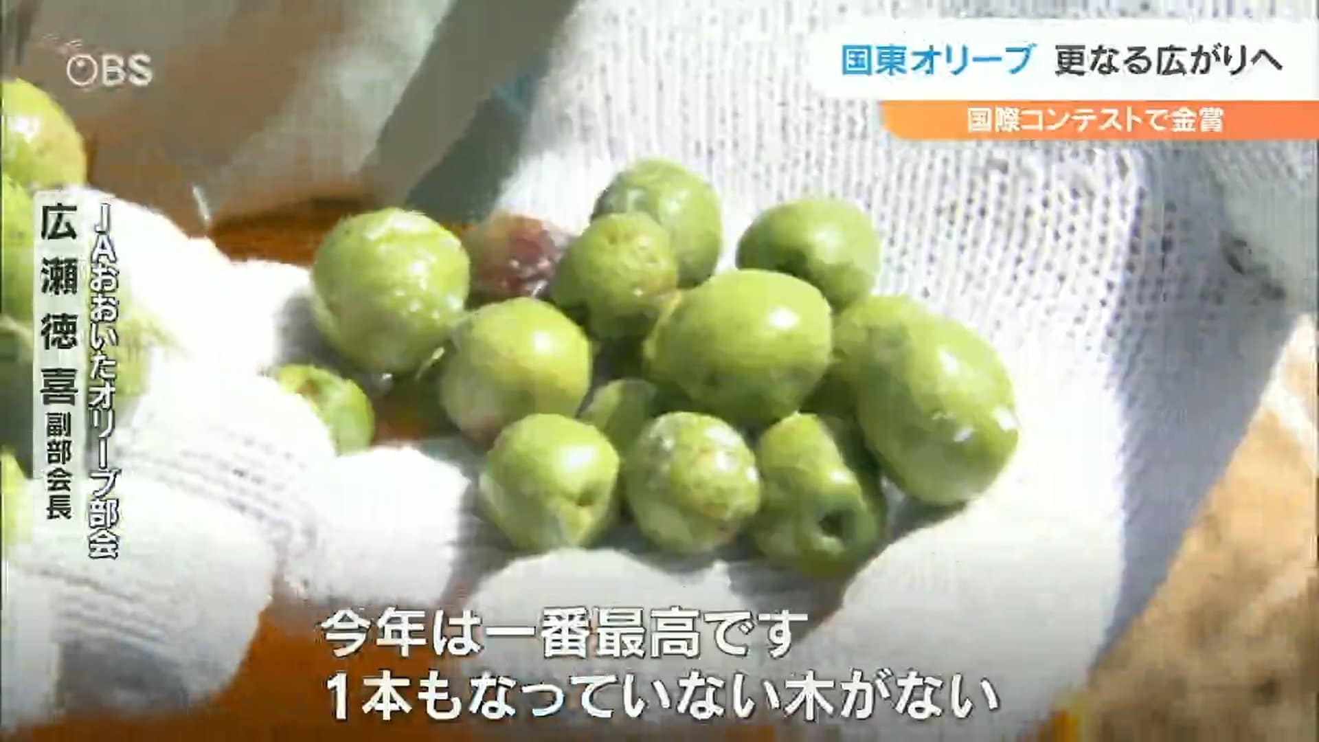 (広瀬徳喜副部長)「今年は一番最高です。一本もなっていない木がない。全部なっています、この中の園で。本当にメインになってくれて、国東はオリーブだっていうことが全国的に有名になってくれるほど増えてくれたらいい」