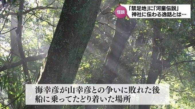 この森は、海幸彦が山幸彦との争いに敗れた後、船に乗ってたどり着いた場所とされ、今でもその船が埋まっていると伝えられています。